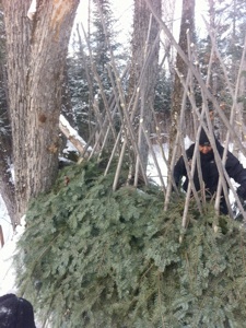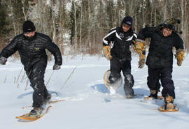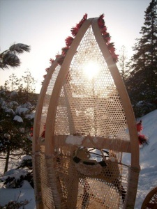 For a more intimate Great LakesCultural Camp Experience utilizing our mobile unit, plan a winter retreat facilitated by our adventure educators. Snow shoeing, winter camping and survival programs are popular for groups of all ages. Come and join us for an amazing experience that includes sleeping in a wigwam or trappers-tent and snowshoeing by moonlight. Smell the fresh tamarack bows beneath you while you rest on a hand made goose down blanket. Listen to “nanabush” legends and stories over a of cup tea.